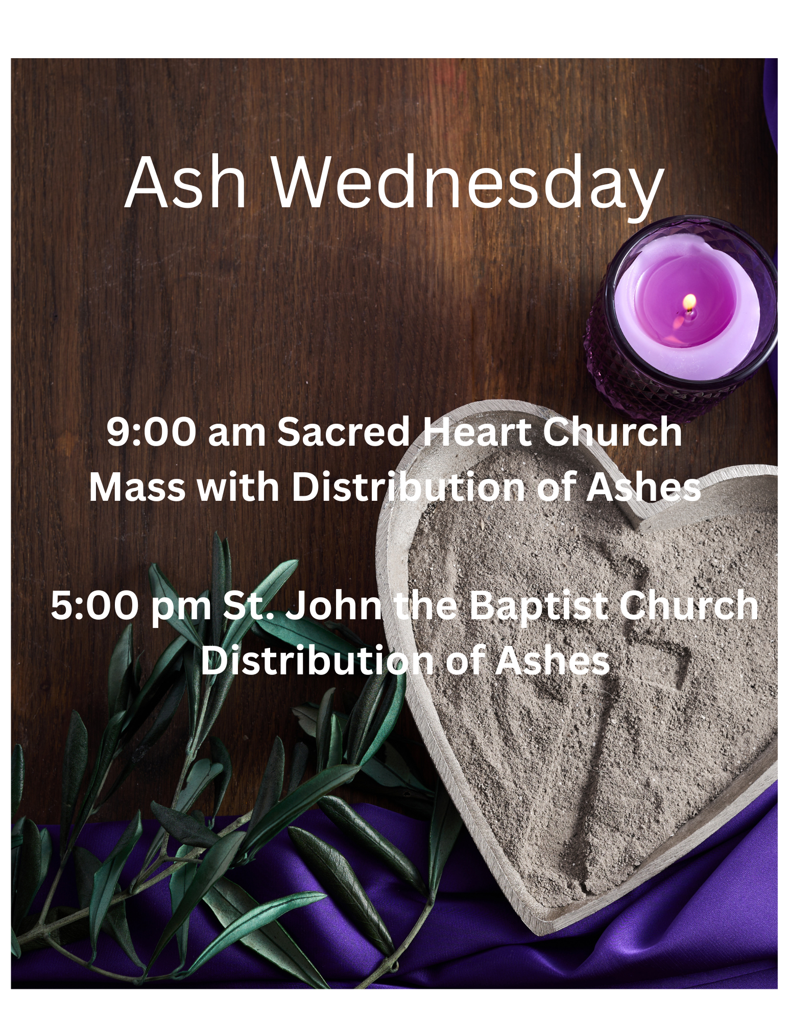 9:00 am Mass with Distribution of Ashes at Sacred Heart Church